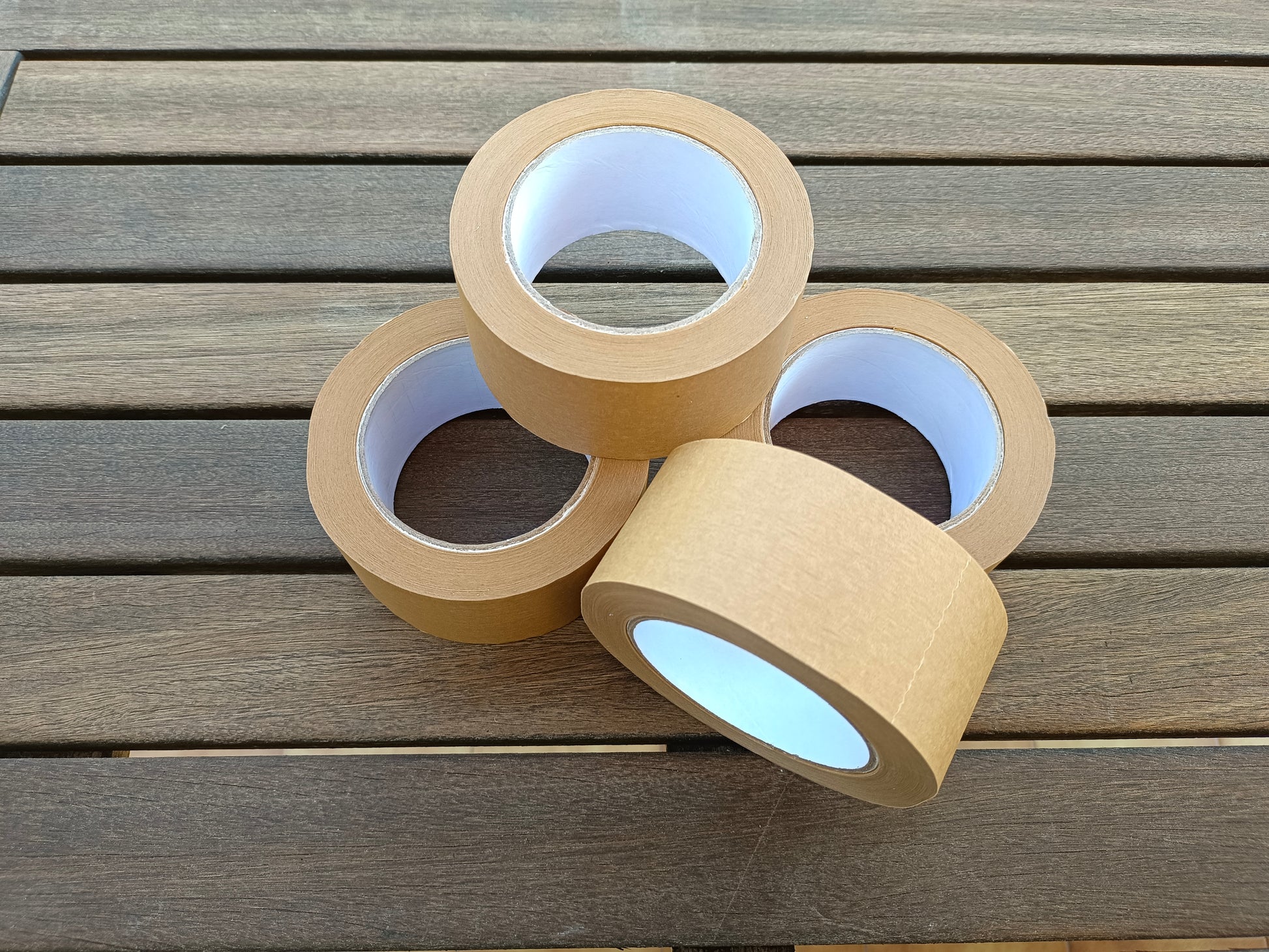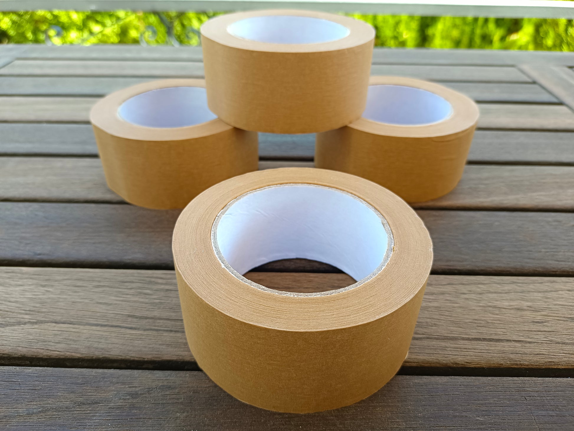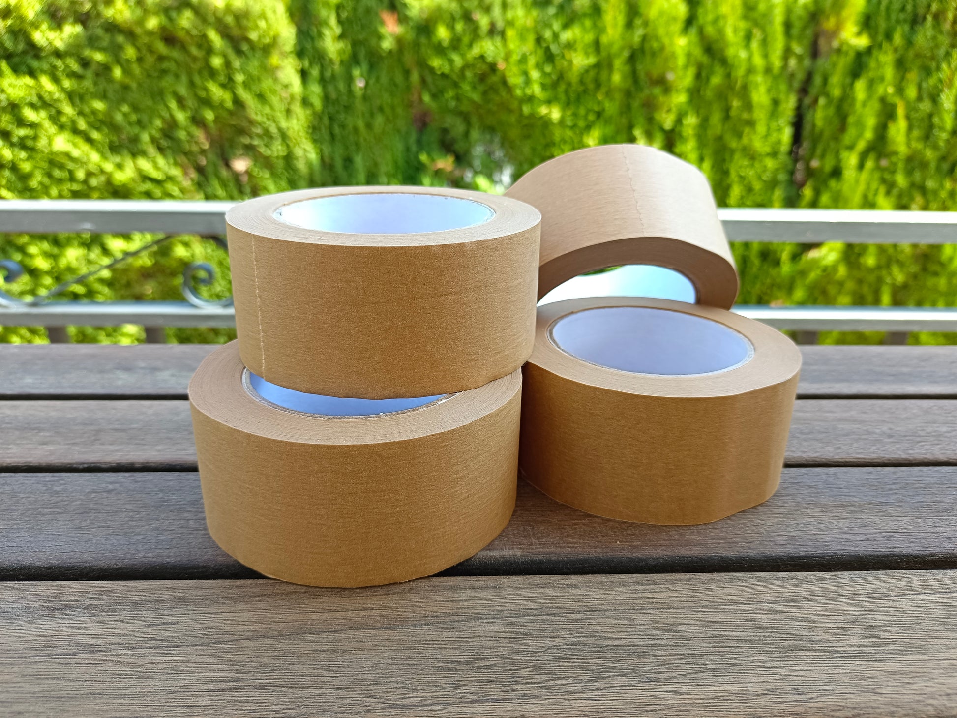 Pack de 4 rollos de papel kraft con adhesivo de caucho natural.